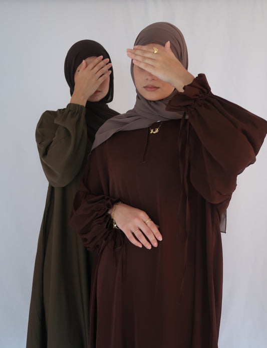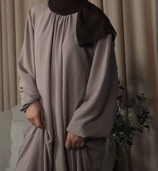 I love these essential abayas! I already have 4 colors and they're all beautiful. The fabric is light and perfect for summer, but I also wear them when it's cold; I just layer and I'm good to go. Can't wait for new designs! May Allah reward Safia and everyone working on/running the brand. Finding good quality modest clothing nowadays has become very hard, so thank you for making it easier :)