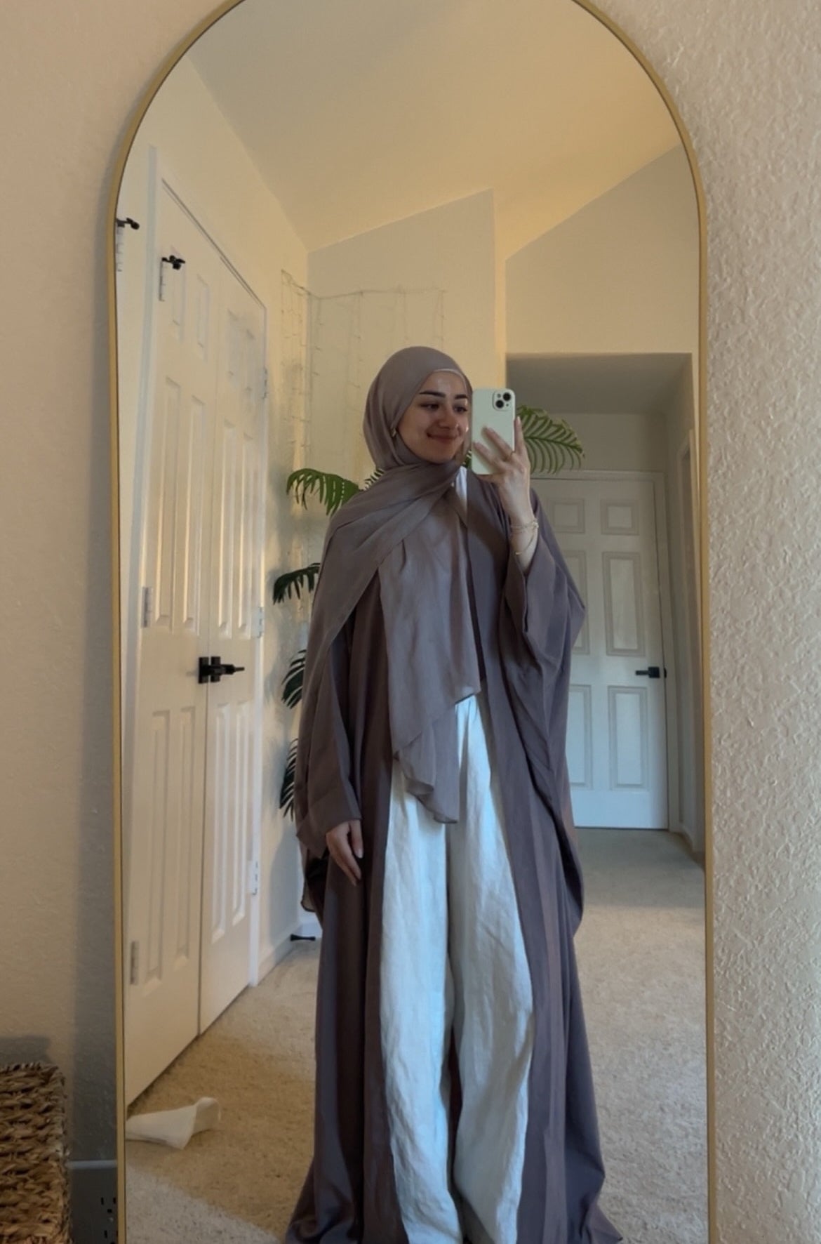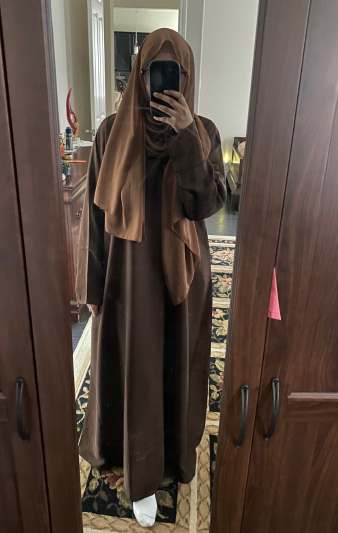 I’ve been seeing this one on Instagram for a while, and I’m sooooo happy I finally ordered it. It’s my now favorite abaya. Neckline is super high and has snaps to keep it closed, which is the most important thing for an abaya imo. The width of the abaya is wider than the essential abayas, which I LOVE. the sleeves are really cute, I thought they would be inconvenient with the strings, but they aren’t bothersome at all. I like the black, because I can wear it for a walk to the coffee shop, or make it look fancier if I need too.